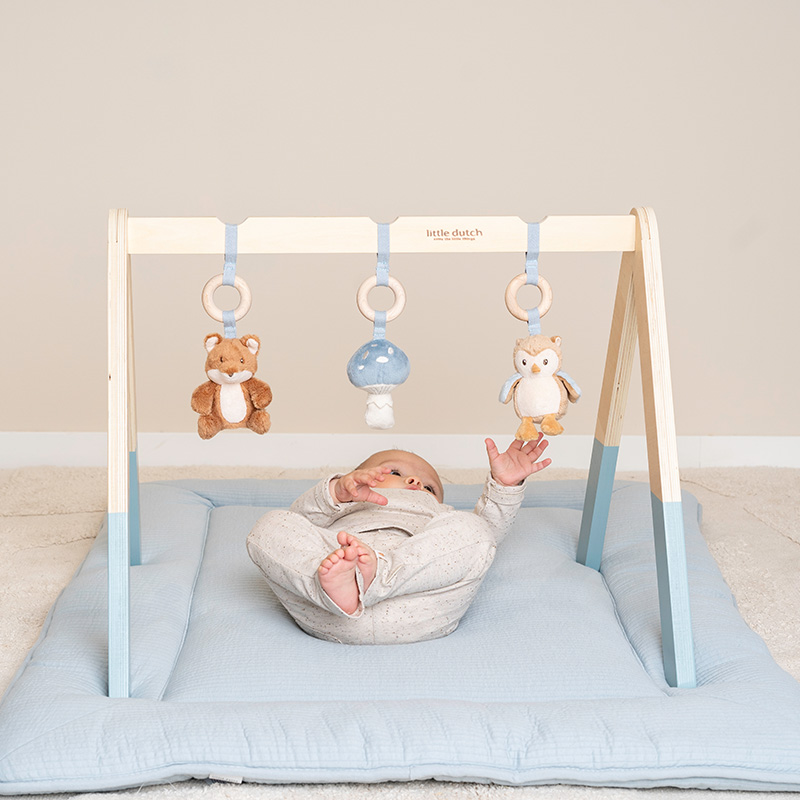 Hoch mit den kleinen Armen! Neugierige Babys werden viel Spaß mit diesem hölzernen Baby-Gym haben. Drei verschiedene Aktivitätsspielzeuge sorgen für Unterhaltung: ein süßer Fuchs, eine weise Eule und ein Pilz. Das Baby-Gym fördert die Hand-Augen-Koordination, verbessert die motorischen Fähigkeiten und regt die Sinne an, wenn Ihr Kind nach einem der Spielzeuge greift. WARNUNG! Um mögliche Verletzungen durch Verheddern zu vermeiden, entfernen Sie dieses Spielzeug, wenn Ihr Kind versucht, auf Händen und Knien in eine Krabbelposition zu kommen. Montage durch einen Erwachsenen erforderlich.