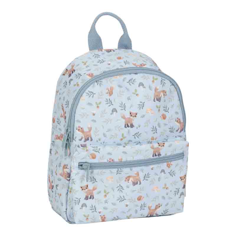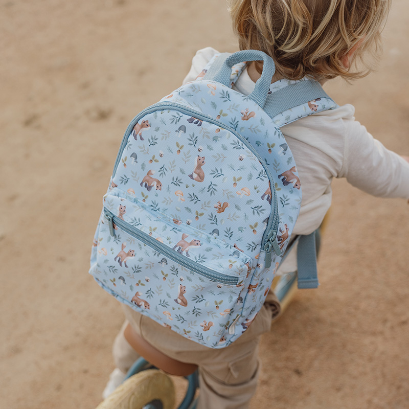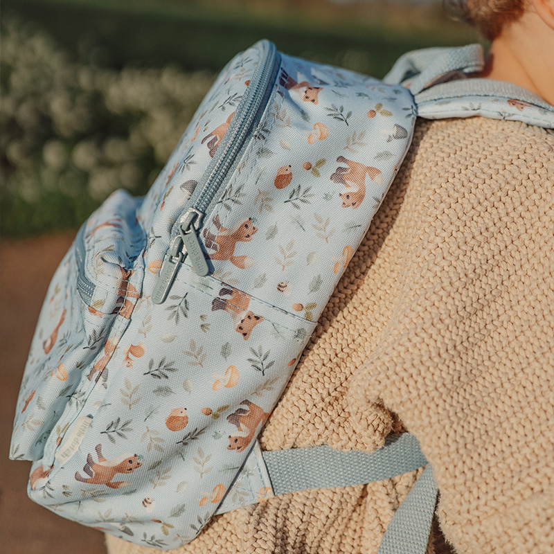 For little adventurers!This children's backpack with the Forest Friends design stands out with its playful illustrations from the collection. The adjustable straps ensure a comfortable fit, while two elastic bands keep drink cups upright. The name label adds extra practicality. Stylish, handy, and ready for adventure!