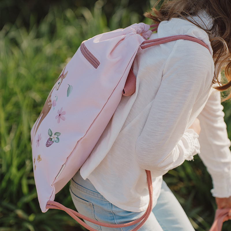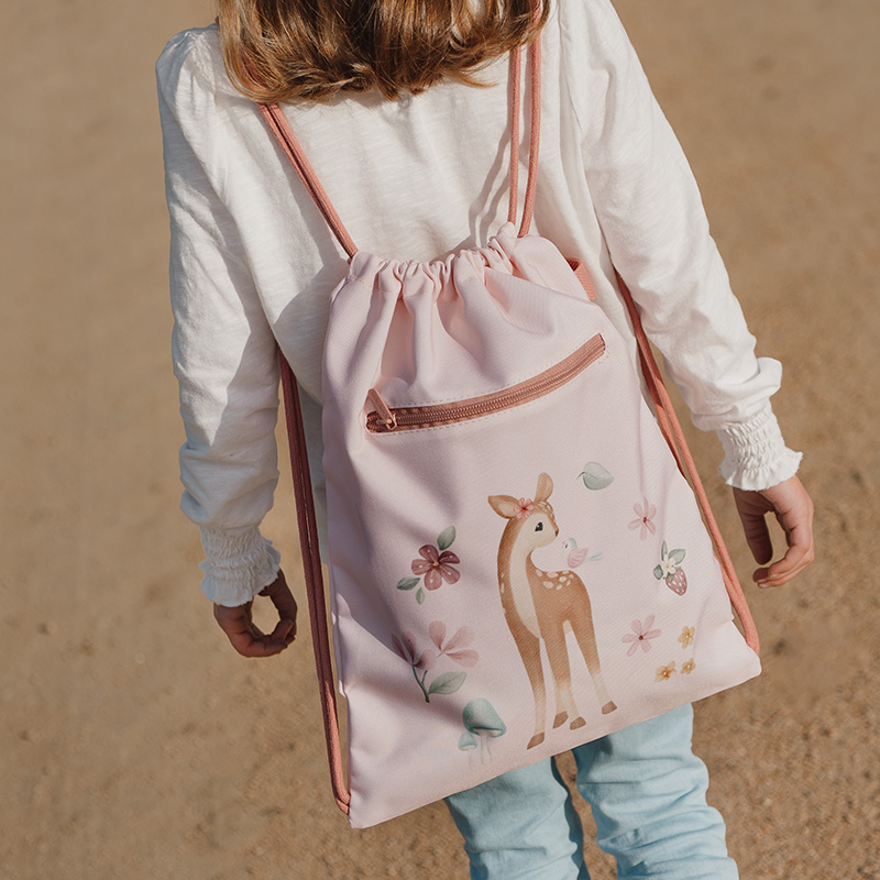 For sporty adventures! This gym and swim bag with Fairy Garden illustration is perfect for school, sports, or a day out. Thanks to the double drawstrings, you can comfortably wear it as a backpack, while the hanging loop adds extra convenience.