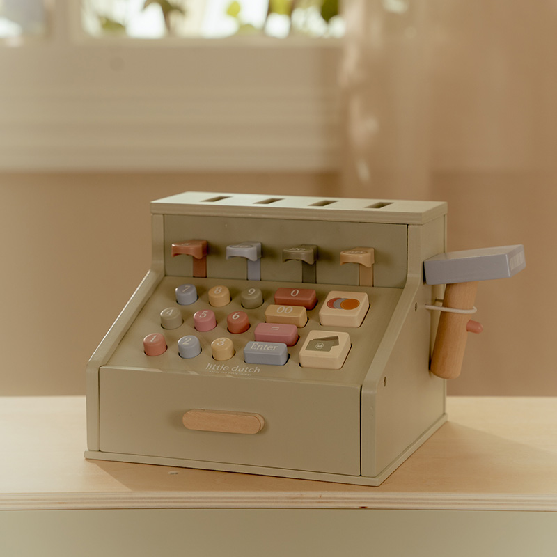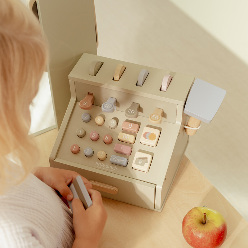 A perfect ingredient for every play kitchen! With this wooden play scale, little bakers and chefs can weigh their ingredients precisely. Place the products on the scale and watch the needle indicate the weight. The scale has real knobs with illustrations, making kitchen play even more realistic. Perfect to combine with the play kitchen and baking set for endless fun!