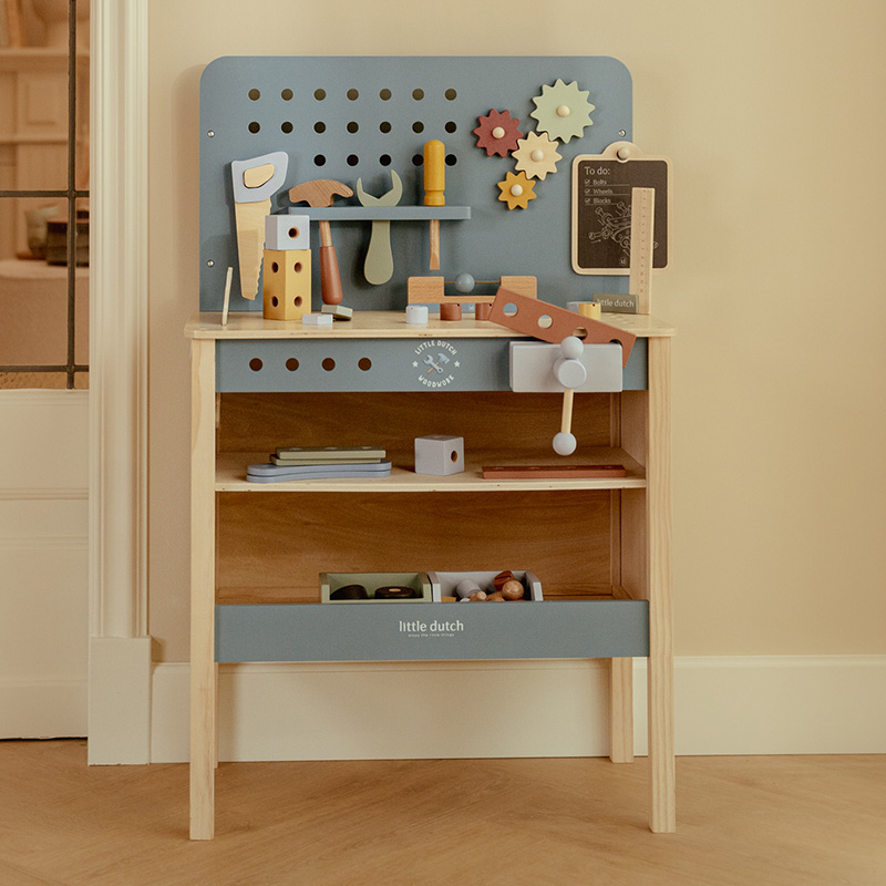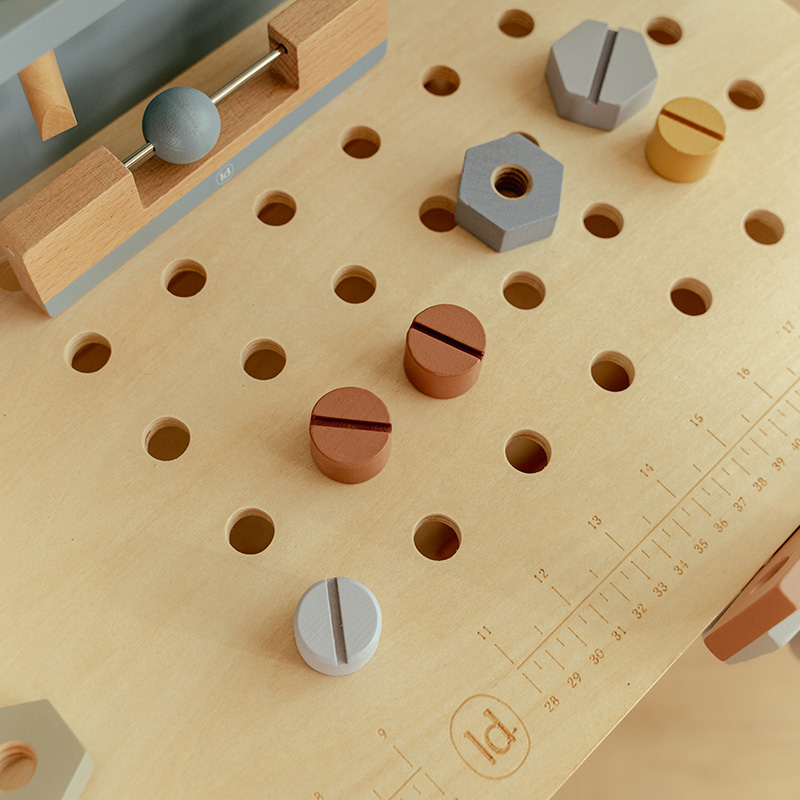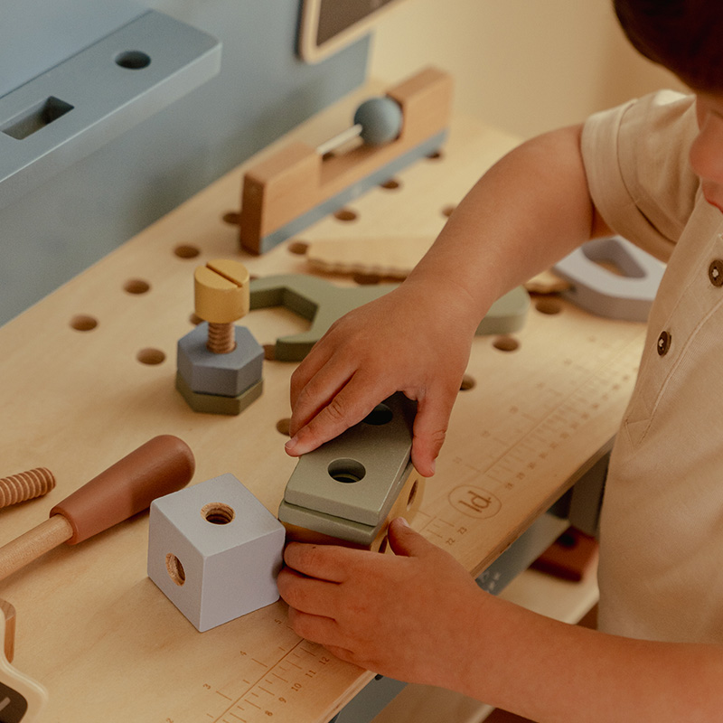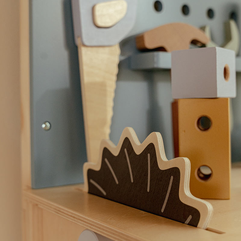 Attention little handymen and handywomen! With this sturdy wooden workbench, kids can hammer, screw, and build whatever they like. Whether it’s a cool car or their own creative construction – anything is possible! The set includes various tools, such as a circular saw, and encourages role-playing, motor skills, and creativity. Ready to get to work?