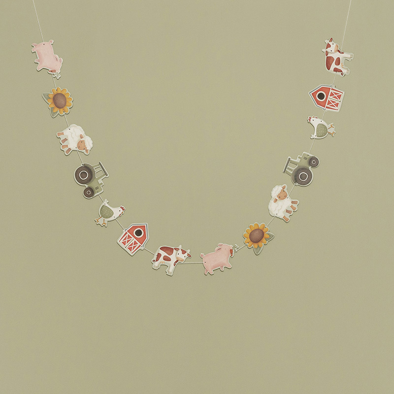 Regarde tous ces animaux mignons et ces personnages amusants ! Suis la ligne de cette guirlande ensorcelante. Quelles aventures nous attendent ? Cette guirlande avec des figurines en carton stimule l'imagination de votre petit pendant que vous lui racontez une histoire avant de dormir. Accrochez la guirlande au mur, le long des rideaux ou sur une étagère pour ajouter un peu de romance à la chambre de bébé. Associez-la à d'autres articles de la collection, tels que du linge de lit, un tapis ou des peluches, pour plonger complètement la chambre dans le thème de Little Farm. Longueur de la corde : 200 cm